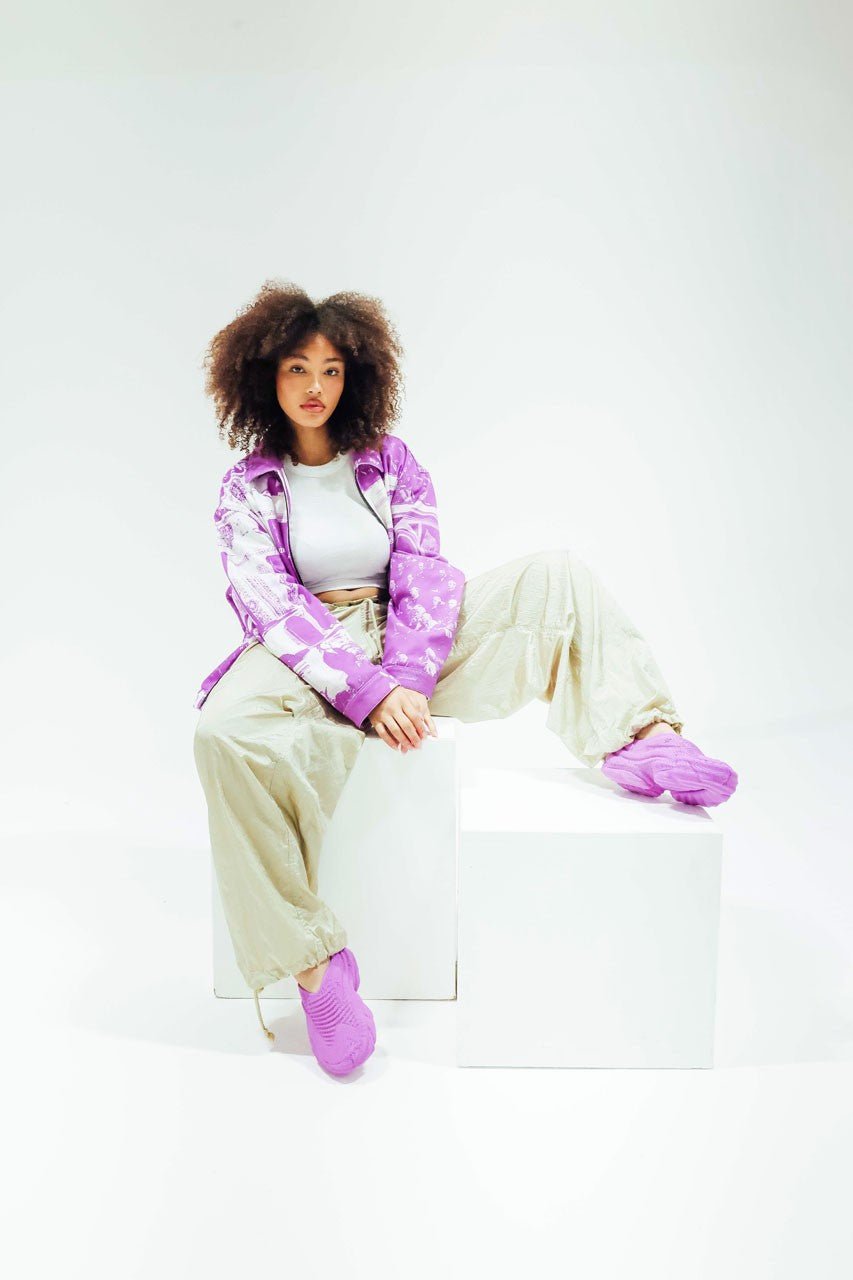 The sneaker, which gets its name from Japanese origin, boasts Rush-Taylor’s classic asymmetrical design codes, drawing inspiration from the natural cadence of water ripples and waves. A “subtle performance silhouette,” the tech-forward shoe appears in a bold purple tone.